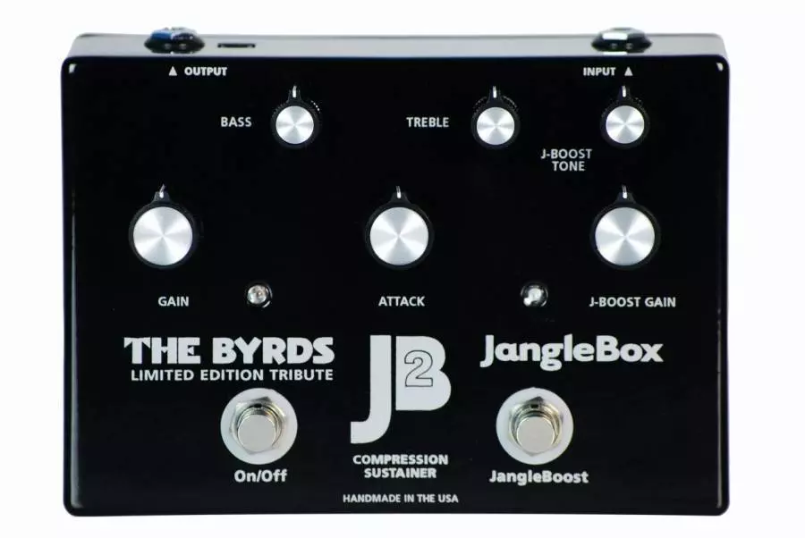Its amazing how an additional tone control can blast an already great pedal into the stratosphere. Coupled with the clean, striking graphics and all the great features of the original JB2 true bypass, total tone flexibility (especially with the updated JangleBoost!), unsurpassed sustain, and the great JangleBox sound this is the only true boost-and-tone, two-stage compressor on the market today. Handmade in the USA, the JangleBox JB2 Byrds LE delivers the distinctive compression edge for demanding pros and aspiring artists alike, in the studio and on the stage.