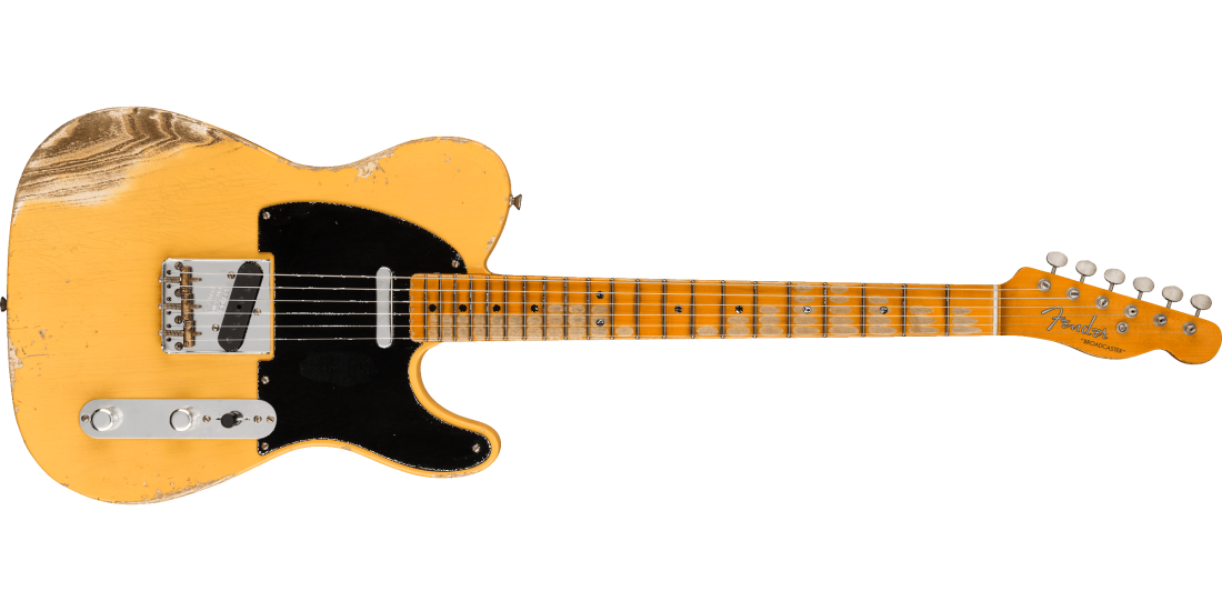 Now, for 2020 alone, the Custom Shop has resurrected this famously rare guitar in honor of its 70th anniversary. The Limited Edition 70th Anniversary Broadcaster has a two-piece select ash body with off-center seam, available in four different Custom Shop aging packages- NOS Time Capsule, Journeyman Relic®, Relic and Heavy Relic- all finished in the original "flash coat" lacquer. The one-piece rift-sawn maple neck has a 1950 Broadcaster profile, 7.25"-9.5" vintage compound-radius fingerboard and 21 medium vintage frets. Other features include hand-wound '50-'51 Blackguard pickups with '51 modded "Nocaster" wiring (similar to the original, with blender pot and slightly brighter rhythm setting in the neck position). The guitar comes with a "case candy" kit containing a 70th anniversary neck plate, Fat '50s control assembly and original Broadcaster sales flyer reprint. Also includes deluxe hardshell case, strap and certificate of authenticity.