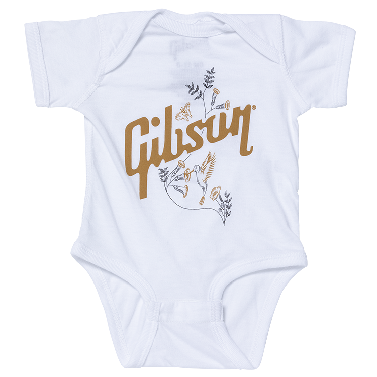 Cette adorable grenouillère présente le graphique emblématique du pickguard Hummingbird™ et le logo Gibson, ce qui en fait un ajout élégant à la garde-robe de votre enfant.