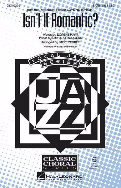 The elegant sonorities of this Rodgers and Hart standard are expressively arranged by Steve Zegree for an unforgettable concert moment. Available separately: SATB, SAB, SSA, ShowTrax CD. Duration: ca. 3:25. Song List:Isn't It Romantic? Lorenz Hart Richard Rodgers Shirley Horn