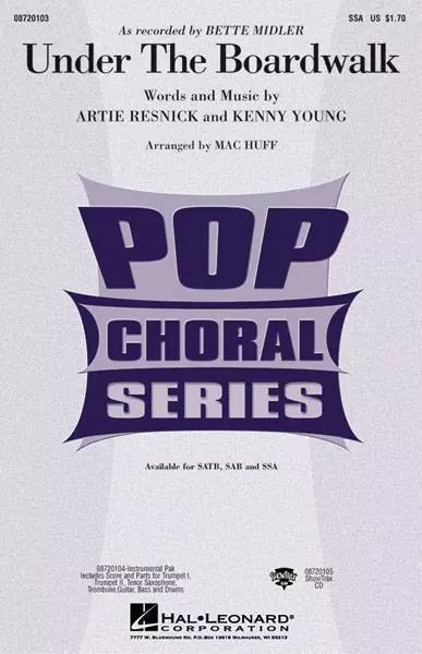 Bette Midler's hit from the movie Beaches brings new appeal to the Drifters' 1964 hit! The moderate tempo and strong hook of this East Coast beach tune give it timeless appeal! Available separately: SATB, SAB, SSA, ShowTrax CD. Combo parts available digitally (tpt1, tpt 2, tsx, tbn, gtr, b, dm) Duration: ca. 2:50. Song List:Under The Boardwalk Artie Resnick Kenny Young Drifters Bette Midler
