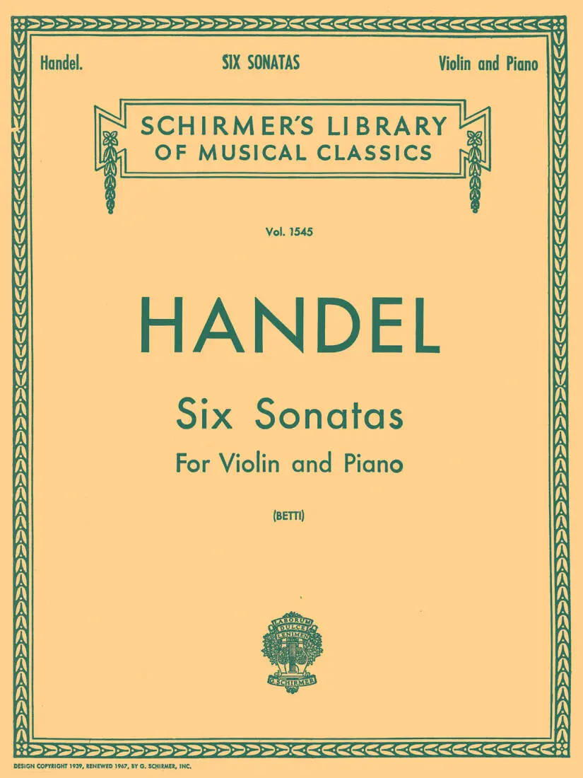 G. Schirmer Inc. Six Sonatas - Handel/Betti - Violin/Piano - Book