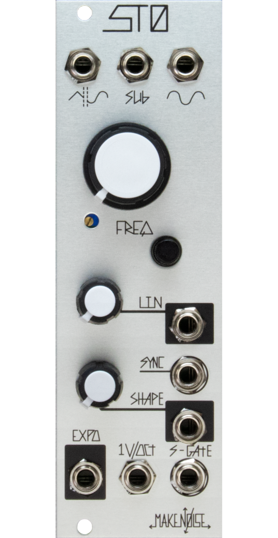 The STO music synthesizer module is a compact Voltage Controlled Oscillator designed for generating SINE waves, Variable wave-SHAPEs, SUB-Octaves, Oscillator SYNC and Linear FM in the analog domain. The Sub-Timbral Oscillator is the more subtle and melodic friend to the DPO's complex harmonic lattice.