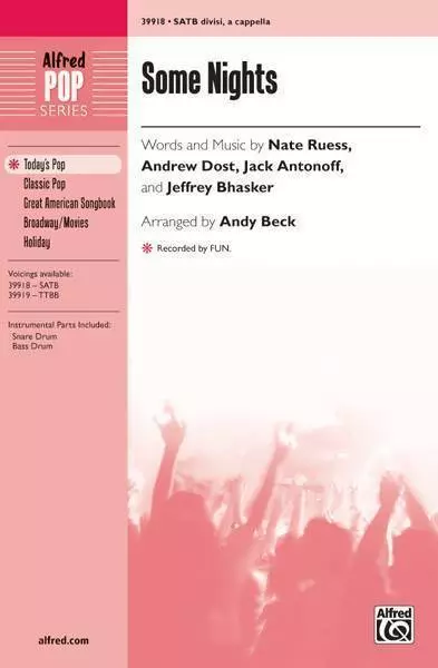 This powerful anthem by the Grammy-award winning pop group FUN. became the band's second top-ten hit on the Billboard Hot 100, and has been featured on Glee. The intense lyrics explore the meaning of life, using war as a metaphor for the struggle between good and evil. Creatively arranged, pairing a strong a cappella choir with martial snare and bass drums.