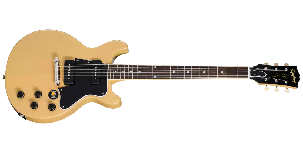 Now, Epiphone, in partnership with Gibson Custom, is proud to introduce the 1960 Les Paul Special Double Cut Reissue, an Inspired by Gibson Custom recreation of the sought-after 1960 Les Paul Special Double Cut. Like the originals, it features a slab mahogany body with double cutaways that provide excellent access to the entire length of the fretboard. The one-piece mahogany neck has a fast-playing 60s SlimTaper profile and is capped with a rosewood fretboard with 22 medium jumbo frets and mother-of-pearl dot position marker inlays. The fretboard has a 12" radius that makes playing first-position chords and solos with string bends further up the neck equally effortless.