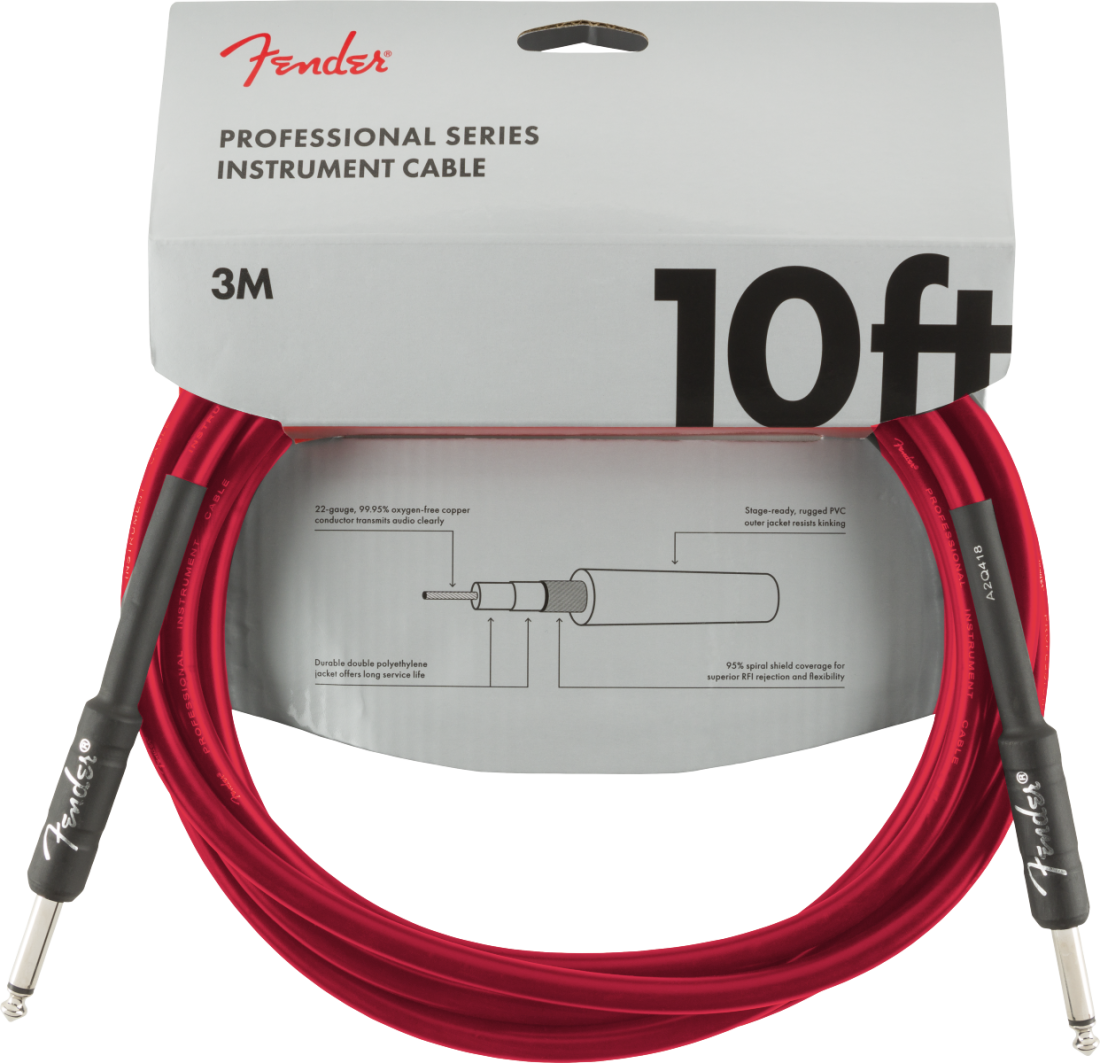 Fender Professional Series Instrument Cable, Straight/Straight, 10' - Dakota Red