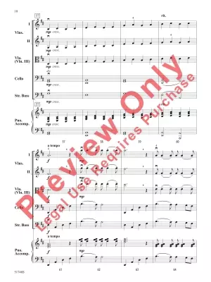 By a Stream was composed by Susan H. Day with the aim of transporting its listeners to a peaceful setting near a mountain stream. Unhurried, with a relaxed tempo, the sounds of the stream are represented by lyrical legato melodies in all parts, flowing cello arpeggios, pizzicato, countermelodies, crescendos, and dynamic contrasts. Written entirely in the key of D major and 4/4 time, techniques to be reinforced include hooked bowings, two note slurs, a few high third fingers in the upper strings, and some divisi. There is a short solo for first violin and cello at the end. Piano is optional.