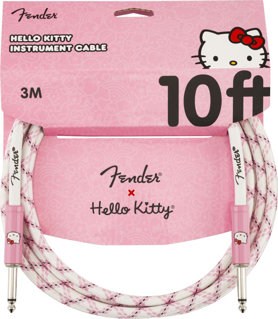 Featuring a woven jacket with Hello Kitty printed on the custom cable ends, the Fender® x Hello Kitty® instrument cable is constructed with durable nickel-plated connectors and spiral shielding for sonic transparency. This eye-catching cable is an essential accessory for every Hello Kitty fan's music arsenal.