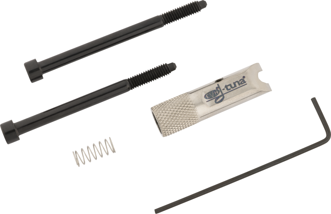 The EVH Titanium D-Tuna is an ingenious device that enables players to drop the low E string to D and back, in an instant. No more having to stop the flow of your set to change tunings or to grab another guitar - just hit the D-Tuna to instantly drop to Drop D tuning. With its titanium construction, it's even stronger, lighter, and more reliable than ever, built to withstand the rigors of the road. It is resistant to corrosion and wear, provides smoother action, and has a truly premium visual appeal, to boot.
