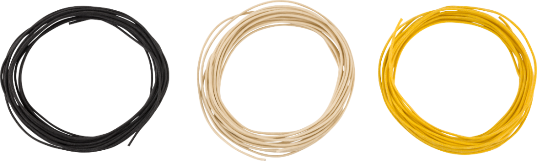 • Fender® Pure Vintage 22 AWG cloth-covered wire matches original 1950s Fender® specs used in classic and modern guitars and amplifiers• Includes period-correct black, white and yellow cloth covered pushback wire with waxed cotton outer braid and celanese inner braid