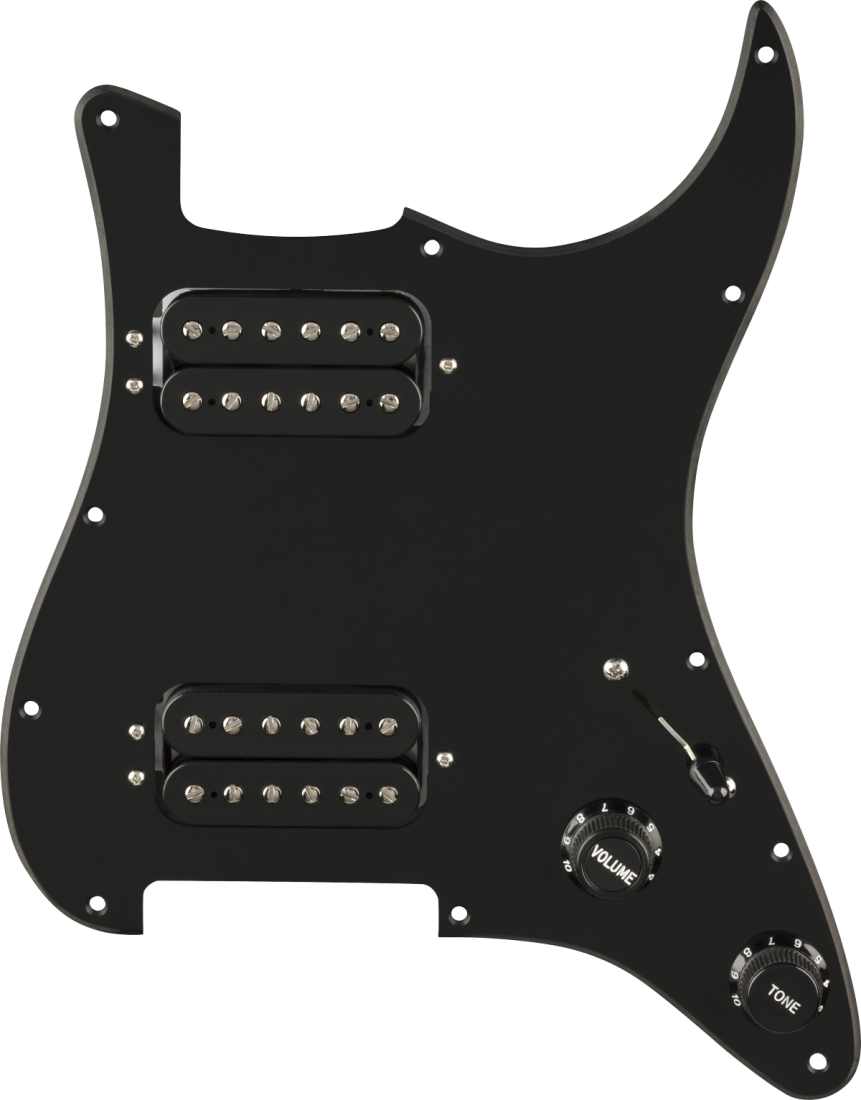 Fender 11 Hole Pre-Wired Strat Pickguard, Quadra Tap HH - Black
