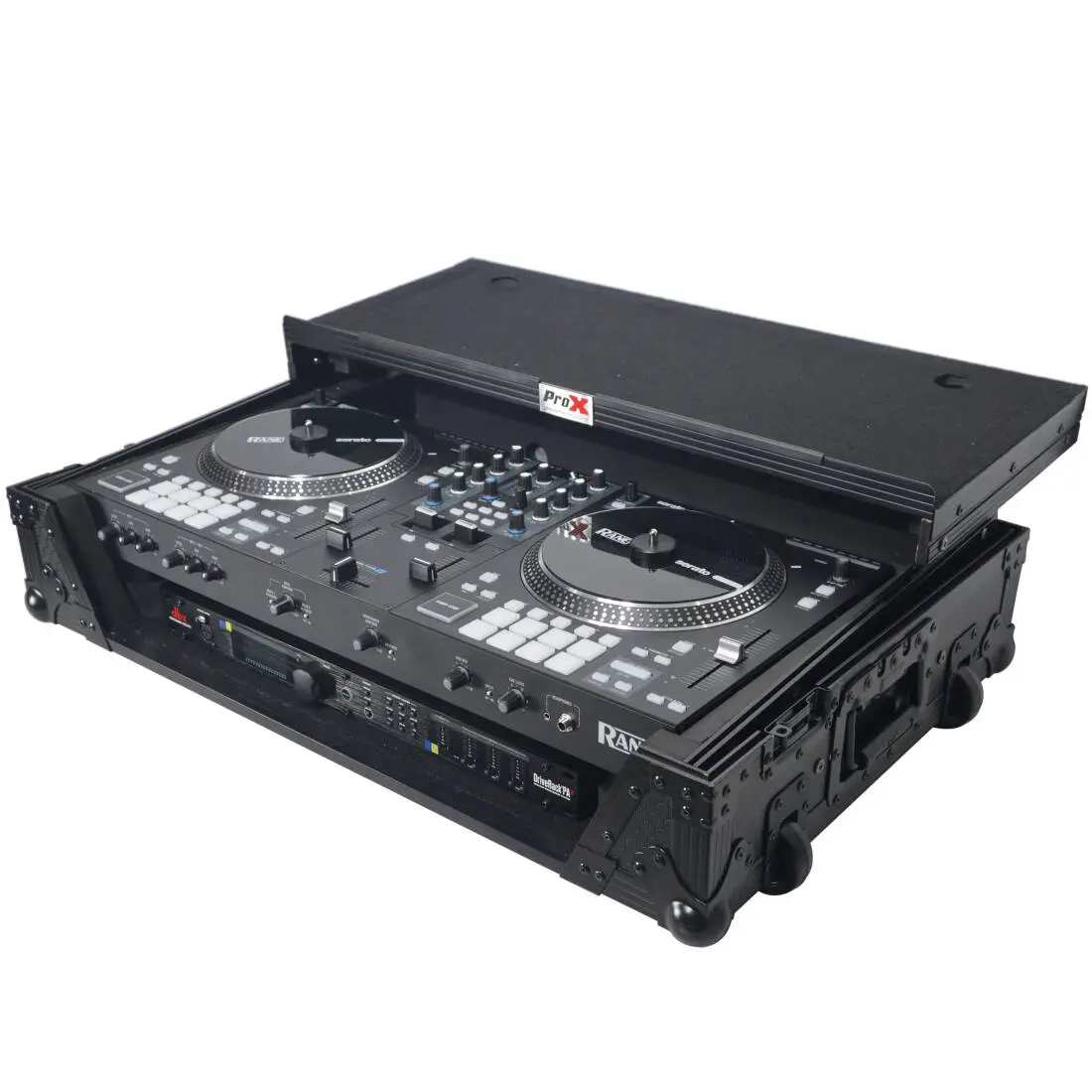 ProX Flight Case For RANE ONE DJ Controller with Sliding Laptop Shelf, 1U Rack, and Wheels - Black on Black