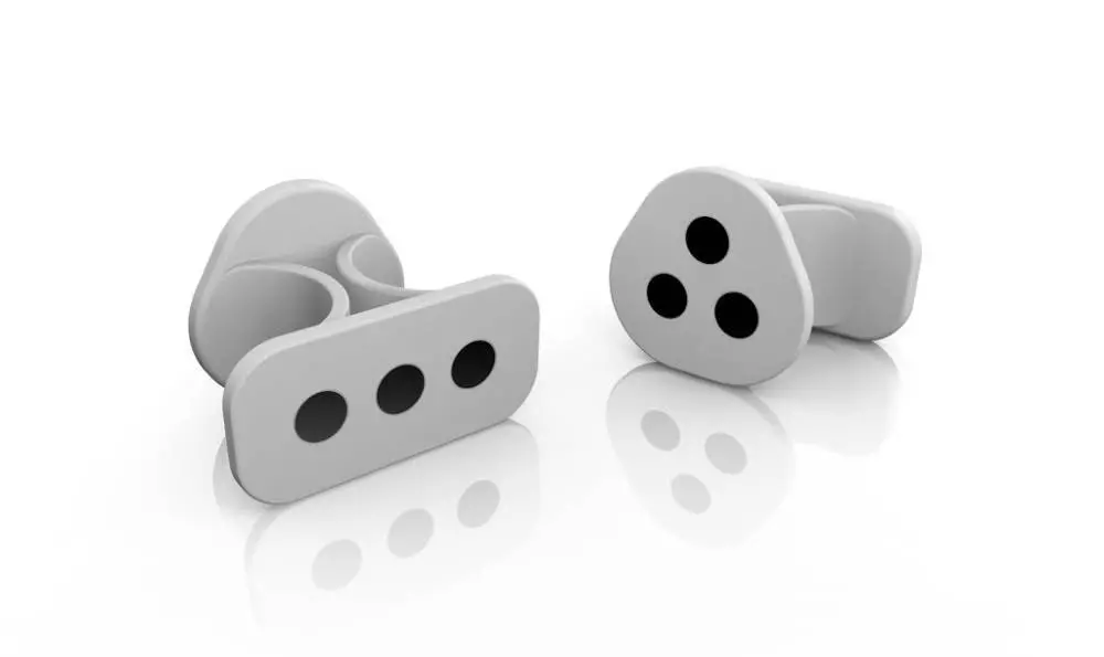 Okay, so how does this thing work? iRing is a simple double sided ring that fits comfortably between your fingers. On one side there is a linear pattern of three dots, on the other a triangular pattern.