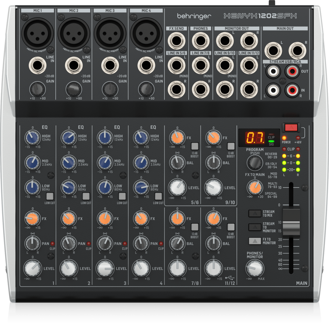 Behringer Xenyx 1202SFX Premium Analog 12-Input Mixer with USB Streaming Interface