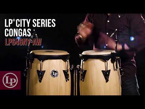 LP City Series gives early and student players a quality conga set to work out your chops. These 10" and 11" drums are 28" tall with Siam Oak construction, while being fitted with natural rawhide heads, 9/32" diameter tuning lugs, heart side plates, rubber bottom rings and Black Powder-Coated hardware. Includes a height-adjustable double conga stand with tuning wrench.