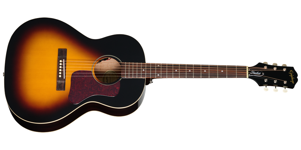 Epiphone also included other details that give the Blues King Studio even more vintage-style flair, including an L-00 shaped dark tortoise shell-colored pickguard, three-on-a-plate tuners with ivory-colored plastic buttons, and a 60s Kalamazoo-style headstock with the Epiphone logo proudly displayed in gold silkscreen. The Blues King Studio comes with Fishman electronics, including an S-Core under-saddle pickup and Fishman Presys VT preamp with soundhole-mounted volume and tone controls that deliver quick and easy access for the player while remaining all but invisible to the audience.
