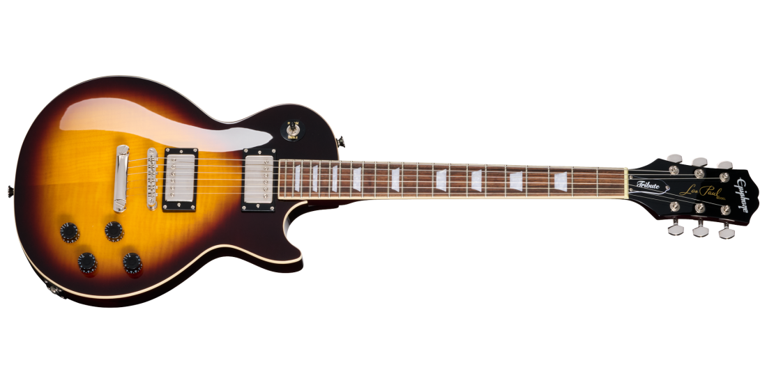 The bolt-on mahogany neck has a fast and easy playing 60s SlimTaper Rounded C profile that makes practice sessions and jamming a joy, and a sculpted heel joint for improved upper fret access. The headstock features the popular 60s Kalamazoo shape and is outfitted with quality die-cast tuning machines, and the bound laurel fretboard is outfitted with 22 medium jumbo frets and adorned with pearloid trapezoid inlays. The Les Paul Tribute Plus is equipped with an Epiphone LockTone™ Tune-O-Matic bridge and LockTone Stop Bar tailpiece for easy adjustment of string height and intonation, and both contribute to this model's excellent sustain.