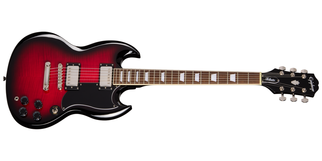 The Epiphone SG Tribute Plus is equipped with a pair of Epiphone humbucker™ pickups, with an Epiphone 650R in the neck position and an Epiphone 700T in the bridge position. Both pickups are furnished with powerful ceramic magnets for strong, full-bodied tone. The Epiphone SG Tribute Plus elevates the Tribute series with even more performance and better looks while remaining accessible to players everywhere. It's a great choice for your first electric guitar or as a step up from a lesser-quality instrument and will serve you well on your musical journey for years to come.