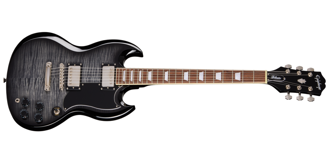 The Epiphone SG Tribute Plus is equipped with a pair of Epiphone humbucker™ pickups, with an Epiphone 650R in the neck position and an Epiphone 700T in the bridge position. Both pickups are furnished with powerful ceramic magnets for strong, full-bodied tone. The Epiphone SG Tribute Plus elevates the Tribute series with even more performance and better looks while remaining accessible to players everywhere. It's a great choice for your first electric guitar or as a step up from a lesser-quality instrument and will serve you well on your musical journey for years to come.