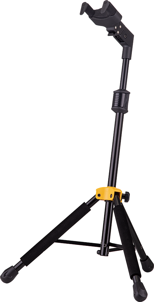 The HERCULES Ukulele Stand UKS100B features the foldable Auto Grip System (AGS) yoke, instant height adjustment clutch and Specially Formulated Foam (SFF) padding on all contact points. The folding built-in Auto Grip System safely locks the instrument in place. It can accommodate ukuleles of all sizes from soprano to baritone. The instant height adjustment clutch with locking pin adjusts stand height quickly, easily and securely. Specially Formulated Foam Padding fully protects the instrument at all contact points. This stand can be folded up compactly for easy transport and storage.