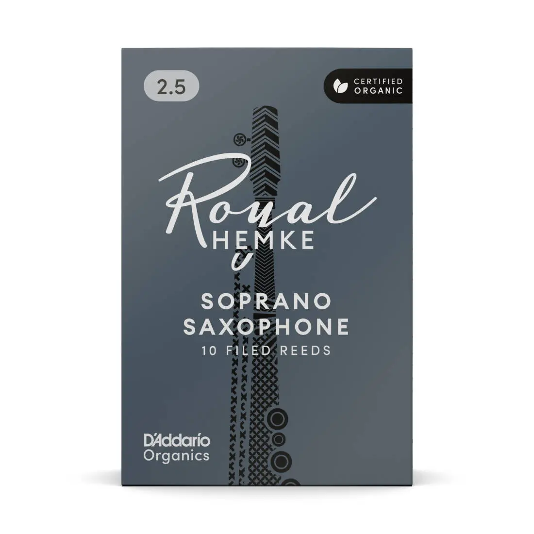 Royal Hemke Organic reeds feature a shorter vamp and thinner tip with a filed cut, producing a dark, rich tone with immediate response and flexibility for both classical and jazz players.