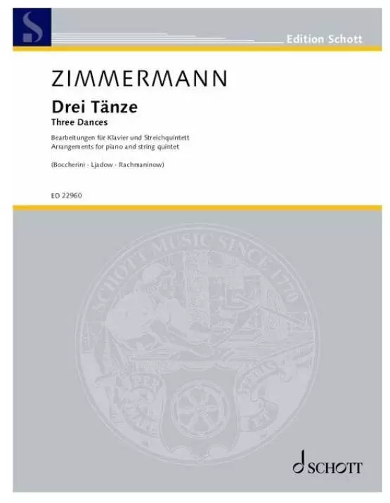 Schott Three Dances - Zimmermann - String Quintet/Piano