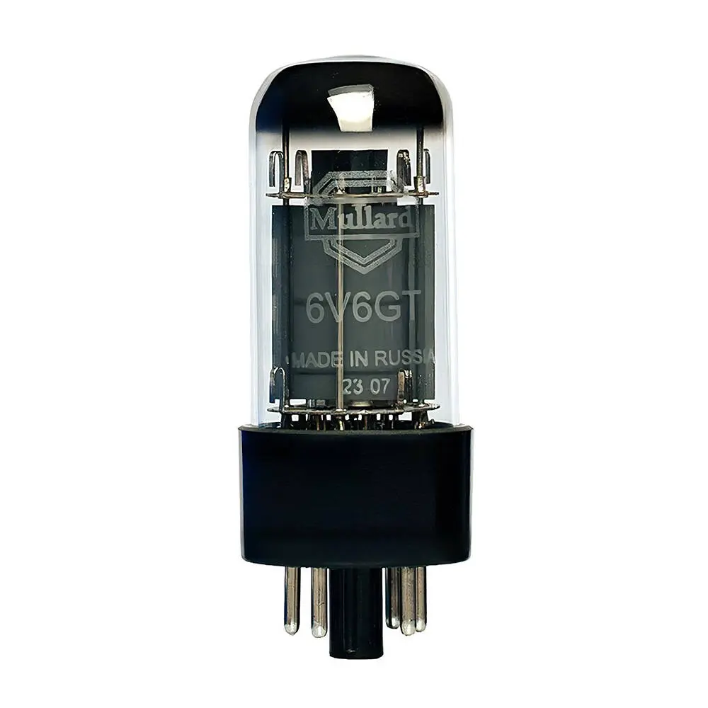 The Mullard 6V6GT Vacuum tube is a premium power beam tetrode in the glass bulb, with equipotential cathode, designed to amplify low frequency power in the output stages of HI - FI audio. It will withstand the high voltages in Fender Deluxe Reverb and other guitar amplifiers running valves above the published spec.