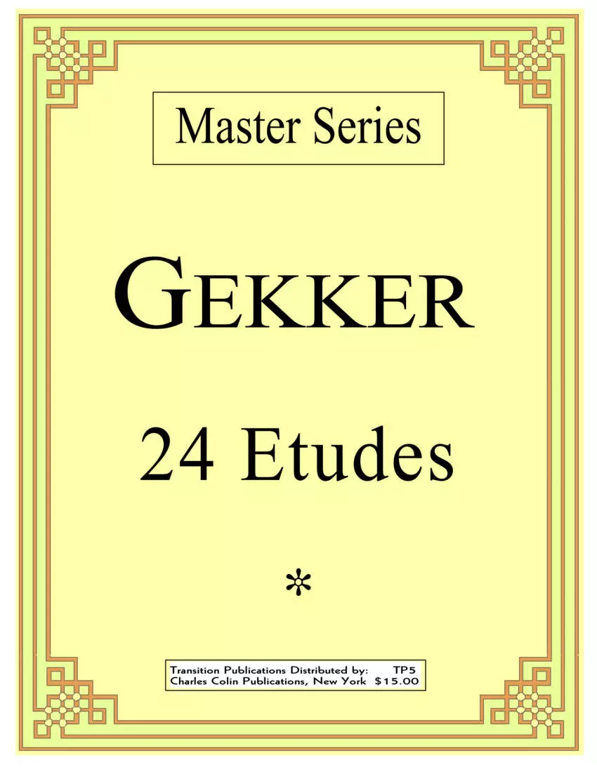 Chris Gekker's 24 Etudes for Trumpet are meant to cover a wide range of trumpet playing areas. Everything from low register playing, multiple tonguing, legato intervals, supple and flexible articulation, and difficult key signatures. Chris is one of the finest trumpeters of his generation, and by combining his technical ability with his compositional aptitude we are left with a set of trumpet studies that are so fantastically idiomatic that trumpeters all over the world are raving. If Chris is one of the most tasteful and artistic players around, Eric Ewazen is his counterpart in the world of composition. Let's see what he has to say about these studies: