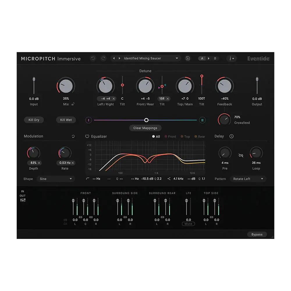 Eventide's MicroPitch effect has long been crucial to packing a huge, detailed stereo production into just two speakers. The panned pitch and delay effect is essential for creating beautiful and wide stereo productions, often better than the real thing. Starting out in the Eventide H910 in the mid-1970s, the MicroPitch effect has continuously evolved and advanced throughout the years, with notable appearances in the legendary H3000 and continuing to this day in the flagship H9000 and popular MicroPitch plugin. Now Eventide engineers have pushed the proven power of strategically decorrelated sound into 3 dimensions, taking your immersive mixes to a place never before possible.