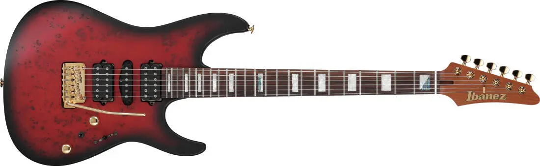 Ibanez Kiko Loureiro Signature 6-String Electric Guitar with Hardshell Case - Ruby Red Sunburst Flat