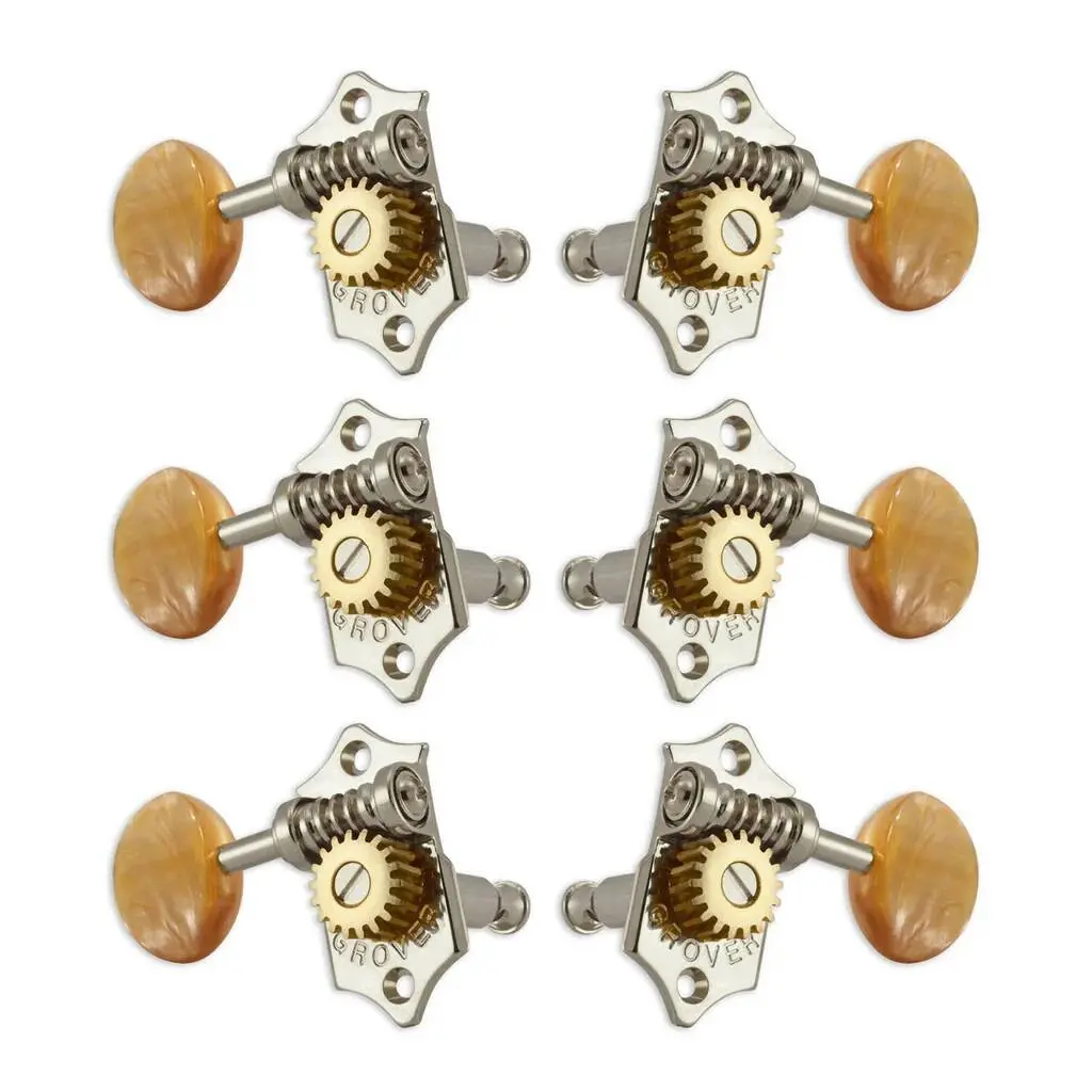 Grover Sta-Tite Tuners 97-18 Series, 18:1 Gear Ratio, Vertical, Set of 3+3 - Nickel with Amber Buttons