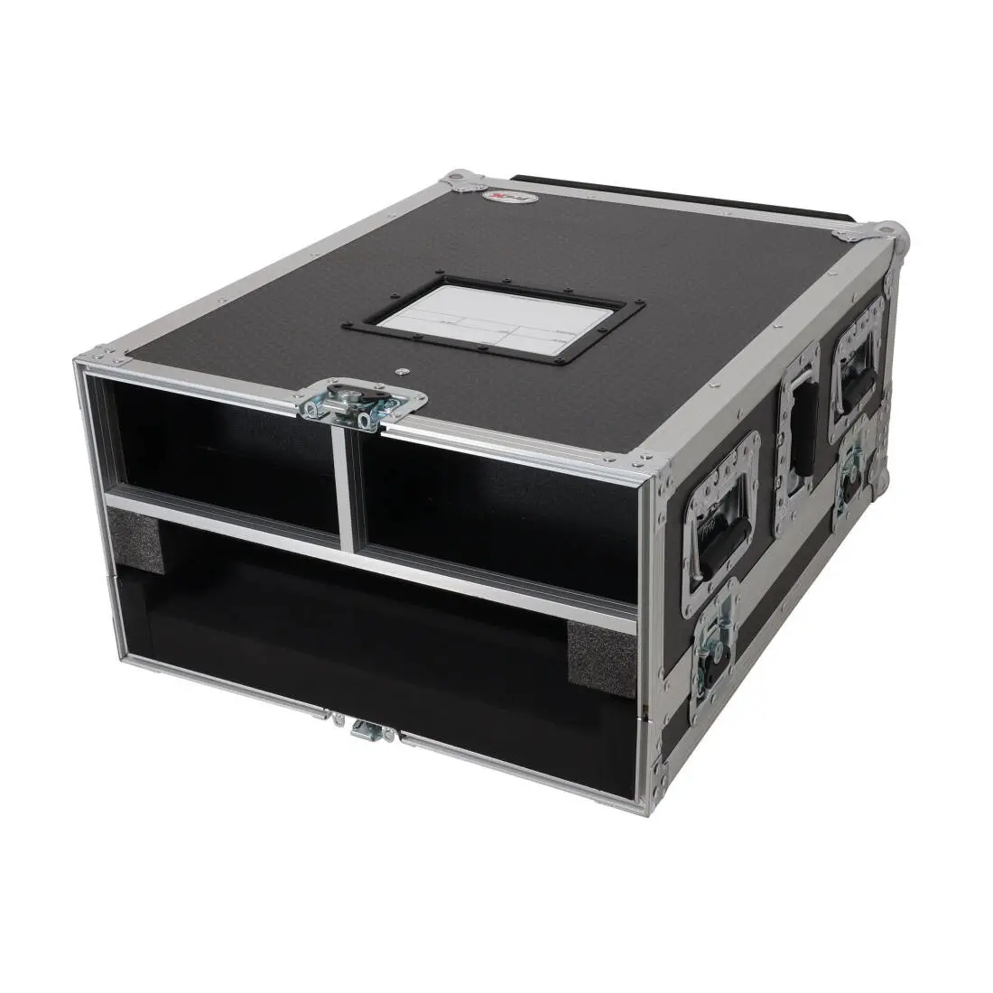 For smooth transport, the case is equipped with four 4" heavy-duty rubber caster wheels, including two locking casters for added stability during operation. Recessed spring-loaded handles on both sides offer comfortable and secure handling, while industrial recessed butterfly twist-lock latches keep valuable equipment protected during transit and storage.
