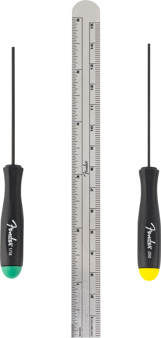 • Includes a 3/16" hex driver, 1/8" hex driver, and durable steel ruler for essential setup tasks• Hex drivers provide quick, accurate adjustments for bridges and saddles
