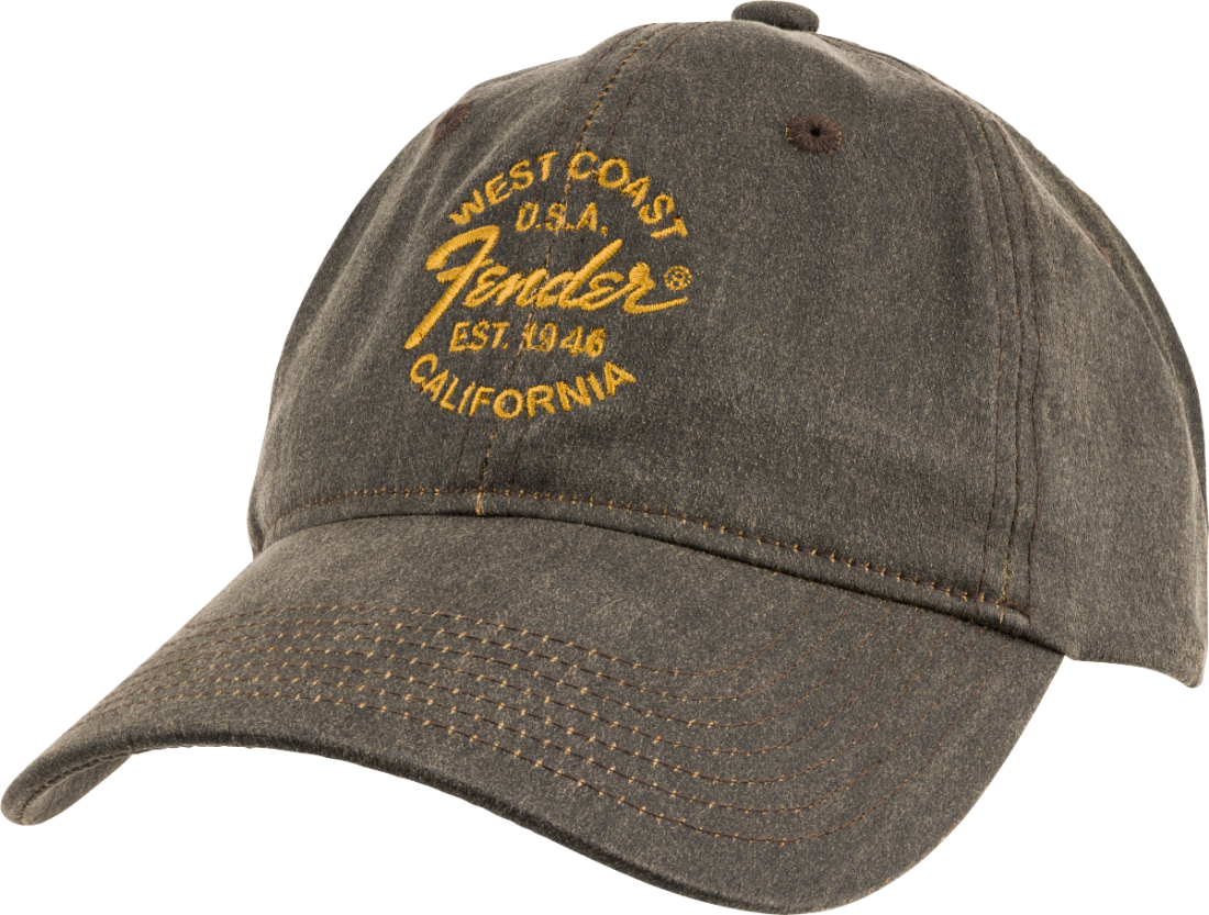 A classic dad hat with bold West Coast attitude. Crafted from soft, washed twill cotton in an oil colour finish, this unstructured 6-panel hat brings vintage, old-school style to any outfit. Featuring a gold embroidered "West Coast" logo on the front, it's the perfect everyday hat to show off your Fender pride. Finished with a metal adjuster for a custom, all-day comfortable fit.