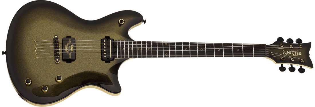 The ebony fingerboard is adorned with bold offset brass ring inlays, while the ultra-thin "C" neck shape and 12"-16" compound radius ensure unmatched speed and comfort. With 22 X-Jumbo stainless steel frets, durability and precision are taken to the extreme. At the heart of the collection are two exclusive pickups, designed to capture the essence of Schecter's past and future: the Sunset Strip Anniversary Edition bridge humbucker, delivering searing modern aggression, and the Pasadena Classic Anniversary Edition neck humbucker, offering vintage warmth and clarity. Together, they create a versatile tonal palette worthy of Schecter's 50 years of sonic legacy.