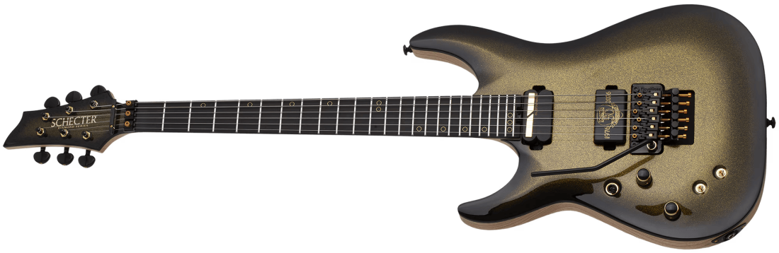 The ebony fingerboard is adorned with bold offset brass ring inlays, while the ultra-thin "C" neck shape and 12"-16" compound radius ensure unmatched speed and comfort. With 24 X-Jumbo stainless steel frets, durability and precision are taken to the extreme. At the heart of the collection are two exclusive pickups, designed to capture the essence of Schecter's past and future: the Sunset Strip Anniversary Edition bridge humbucker, delivering searing modern aggression, and a Gold Sustainiac. Together, they create a versatile tonal palette worthy of Schecter's 50 years of sonic legacy.