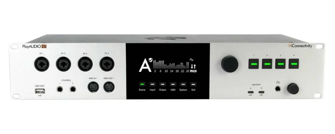 A first-of-its-kind all-in-one solution, PlayAUDIO2U delivers a massive set of tools in a robust tour-ready enclosure. Audio inputs, outputs, MIDI I/O, MIDI control, and RTP networking all integrated through iConnectivitys legendary redundancy, let you input audio, playback tracks and/or virtual instruments, and connect MIDI throughout the venue.