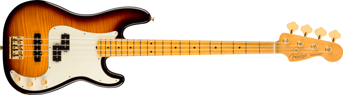 • Select alder body with flame maple top in 2-colour sunburst• 75th Anniversary V-Mod Single-Coil Jazz Bass® bridge pickup and 75th Anniversary V-Mod Split Single-Coil Precision Bass® middle pickup