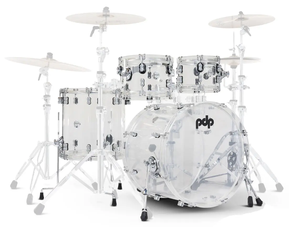 Pacific Drums Concept Acrylic 4-Piece Shell Pack with Chrome Hardware (22,10,12,16) - Clear