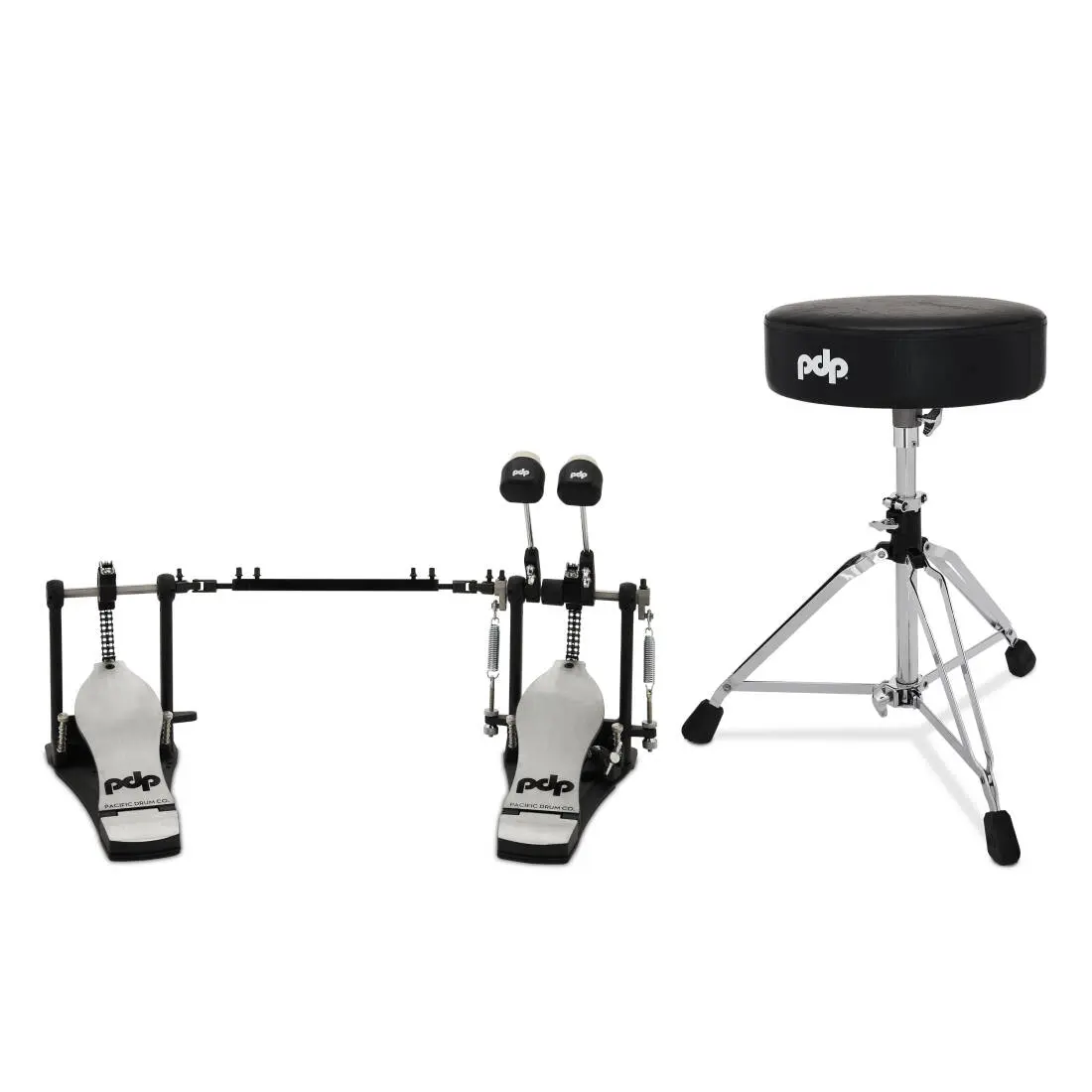The PDP 800 Series is medium-weight, pro-inspired hardware. Designed by DW, these stands include features like lightweight composite memory locks on all tube joints and oversized anti-slip rubber feet. Included in these packs is the PDSP810 single pedal that's both stylish and responsive. The dual-post design is outfitted with a double-chain, concentric drive system, smooth cast footboard with integrated needle bearing hinge, and offset toe clamp.