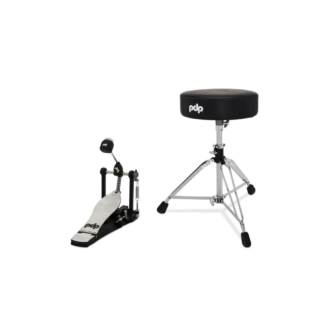 The PDP 800 Series is medium-weight, pro-inspired hardware. Designed by DW, these stands include features like lightweight composite memory locks on all tube joints and oversized anti-slip rubber feet. Included in these packs is the PDSP810 single pedal that's both stylish and responsive. The dual-post design is outfitted with a double-chain, concentric drive system, smooth cast footboard with integrated needle bearing hinge, and offset toe clamp.
