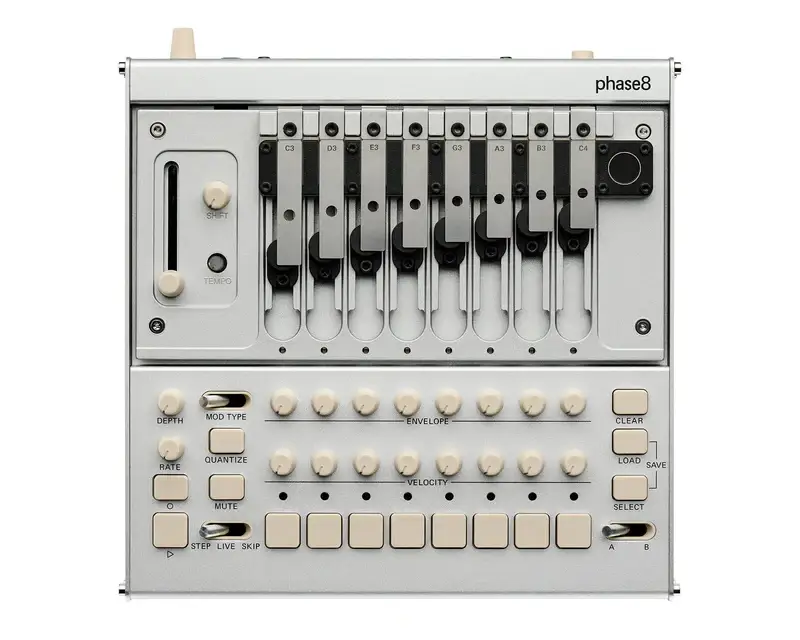 phase8 is an organic, responsive instrument that feels alive in your hands and responds to the world around you. 8 independent electromechanical voices with steel resonators are at the heart of the instrument's acoustic sound.
