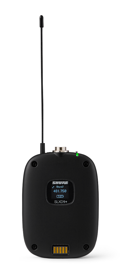 The SLXD1+ Digital Wireless Bodypack transmitter sends transparent, 24-bit digital audio to SLX-D+ wireless receivers via a rock-solid RF connection. Unlock a new world of hands-free oversight and management for seasoned volunteers and pro engineers alike. With a durable and sleek design, wide-tuning SLX-D+ bodypack transmitters are easily concealed on-talent or as a part of wardrobe and stay in sync with SLX-D+ receivers, courtesy of a dedicated ShowLink® Ease control link. Manage interference, scan for new channels and update for clear transmission automatically. Also monitor and configure via a paired mobile device. The TA4F/TQG connector accepts a wide range of lavalier, instrument and headset microphones. Includes SLXD1+bodypack transmitter, a pair of AA alkaline batteries and a zippered carrying pouch.
