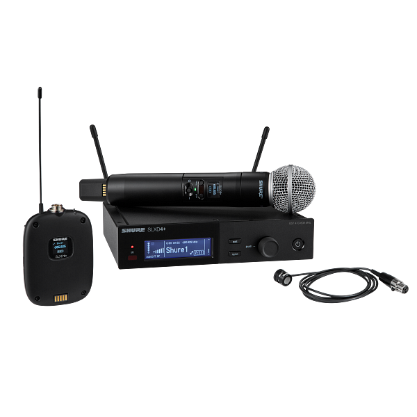 The SLXD124+/85M Wireless Combo System unlocks a new world of hands-free oversight and management for seasoned volunteers and pro engineers alike. Delivering transparent, 24-bit digital audio and rock-solid RF performance, wide-tuning SLX-D+ transmitters and receivers stay in sync courtesy of a dedicated ShowLink® Ease control link. Manage interference, scan for new channels and update for clear transmission automatically. Also monitor and configure via a paired mobile device. Ships with SLXD4+ single-channel receiver, SLXD1+ bodypack transmitter with WL185m cardioid condenser lavalier microphone, SLXD2+/58 handheld transmitter with the legendary SM58® cardioid dynamic capsule, antenna and rackmount accessories and 4 AA batteries.