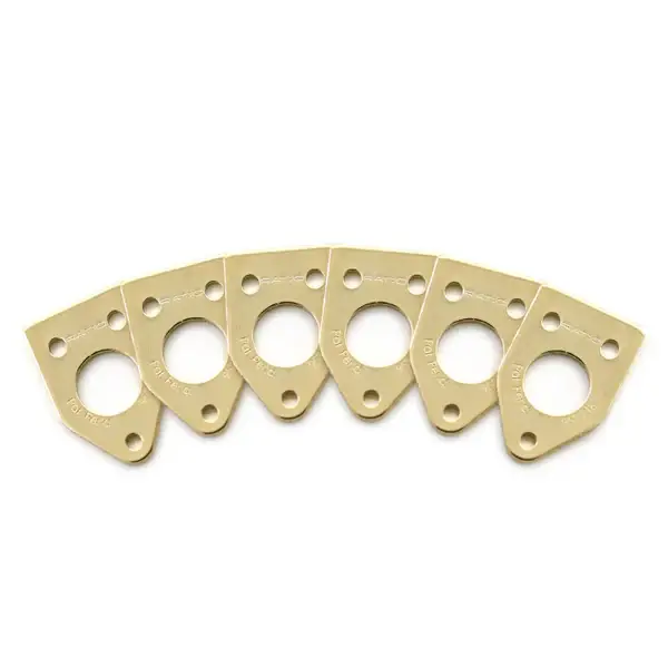 The PRT-952-216 is a set of 6 Ratio InvisoMatch standard installation plates, designed for easy installation of Ratio Tuned Machine Heads. It has a 90-degree screw hole mount. Match the correct plates to the current machine head screw position on your guitar. Use your guitar's existing mounting holes for a fast, perfect Ratio Installation.