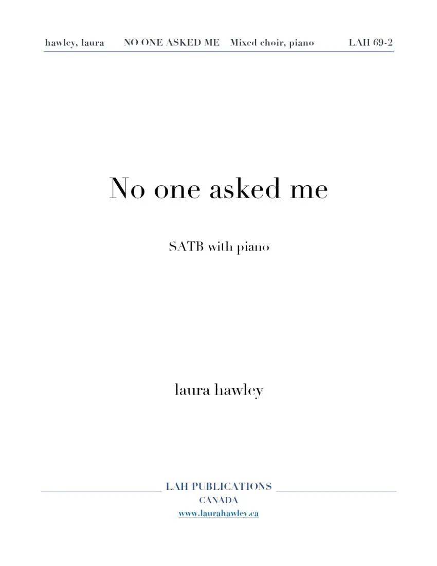 LAH Publications No One Asked Me - Hawley - Choral Octavo - SATB Accomapnied