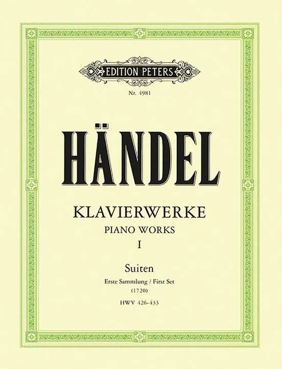 Handel's first volume of Keyboard Works, edited by Walter Serauky. Contains 8 suites (HWV 426-433), regarded as some of Handel's most popular works for solo piano.