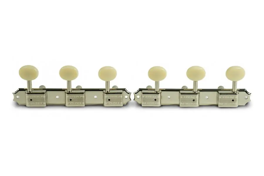 Kluson 3 On A Plate Supreme Series Tuning Machines - Nickel with White Plastic Button
