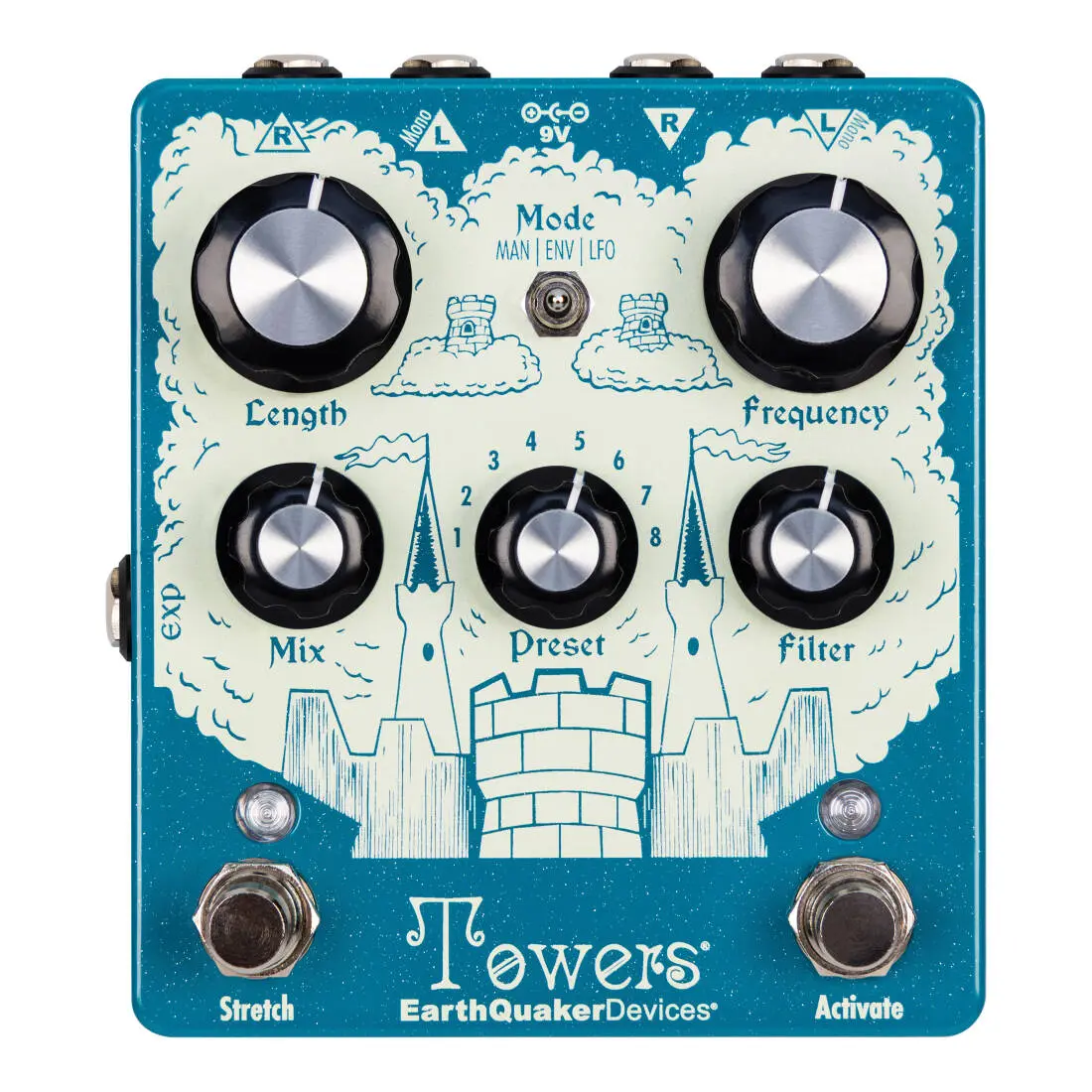 Towers is built by the skilled tone technicians of EarthQuaker Devices on the banks of the prestigious Ohio and Erie Canal located in the heart of the heart of it all, Akron, Ohio.