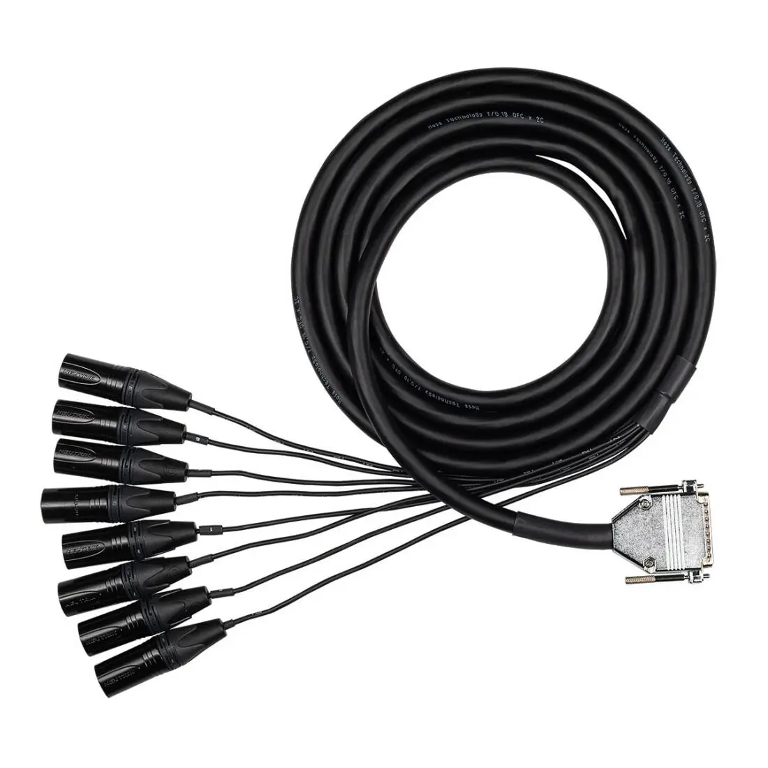 • Genuine Neutrik® Connectors: XX-Series XLR Female plugs (Black Metal Housing / Gold Contacts) provide the industry's highest mating cycle durability and contact integrity.• Die-Cast Metal Hoods: Robust DB25 housing provides superior EMI shielding and physical protection.